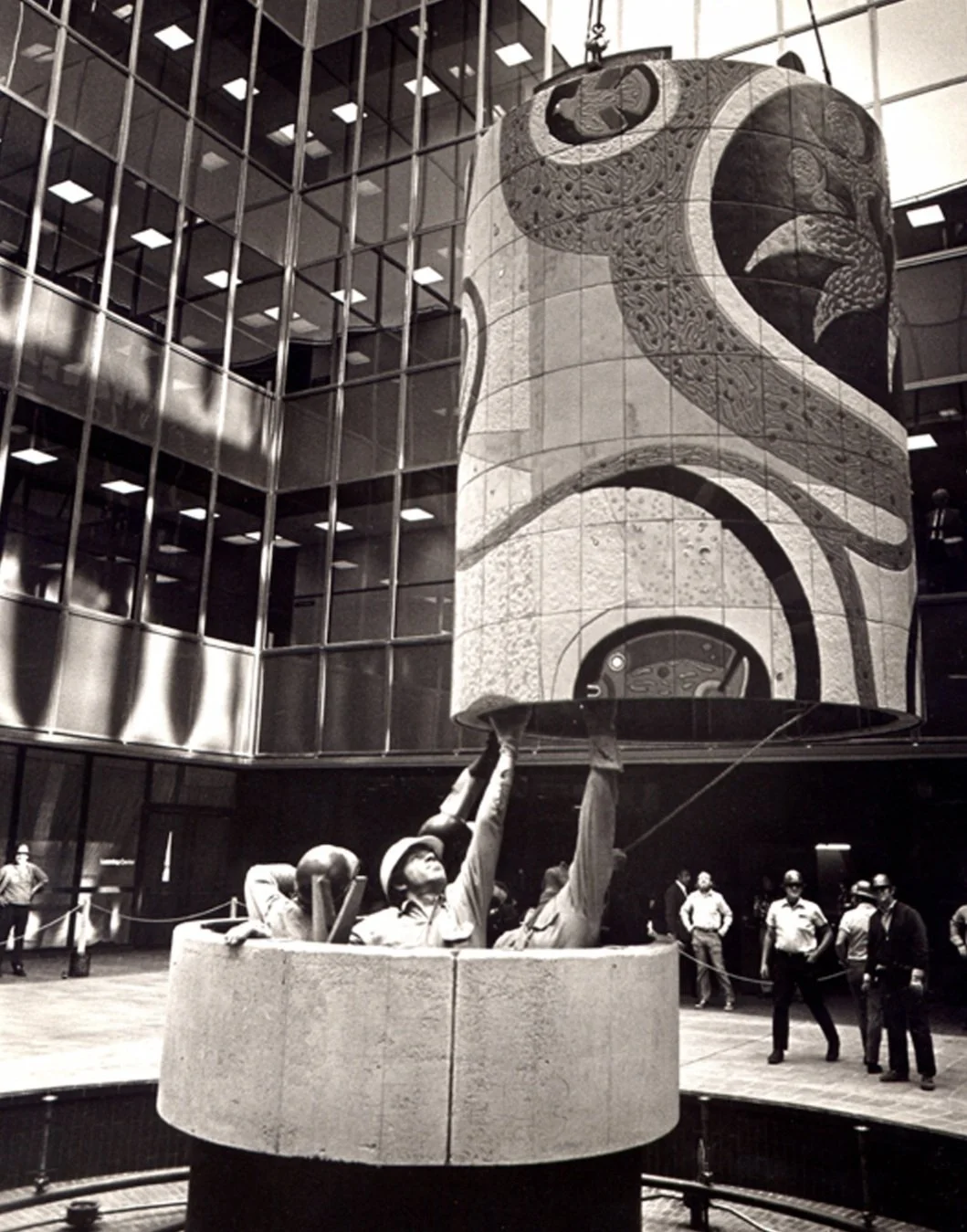 1972: TVS makes Celebration of Life for Pereira’s Pacific Mutual building, Newport Beach, CA. Assisted by Tony Sheets.