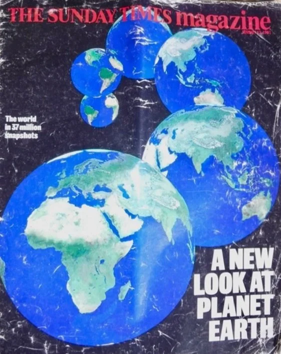 JANUARY 13, 1991: The London Times Sunday Magazine features the GeoSphere Project on its cover and includes a purchase offer. Around 6,000 posters are sold in the first weekend. Van Sant uses the income to equip his Santa Monica studio with desks from the Boys and Girls Club thrift store and hire fifteen account executives to take orders for use of the Image.