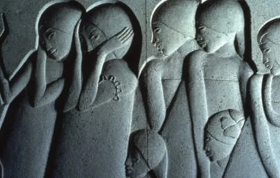 Unlike Indigenous Inhabitants(1968) and Industries of Hawaii (1972), for which the sculptures were cast in place during the construction of the architecture, the panels of Luau were pre-cast and attached to a wall; originally in the lobby of the Honolulu International Airport, now by checkpoint #3.