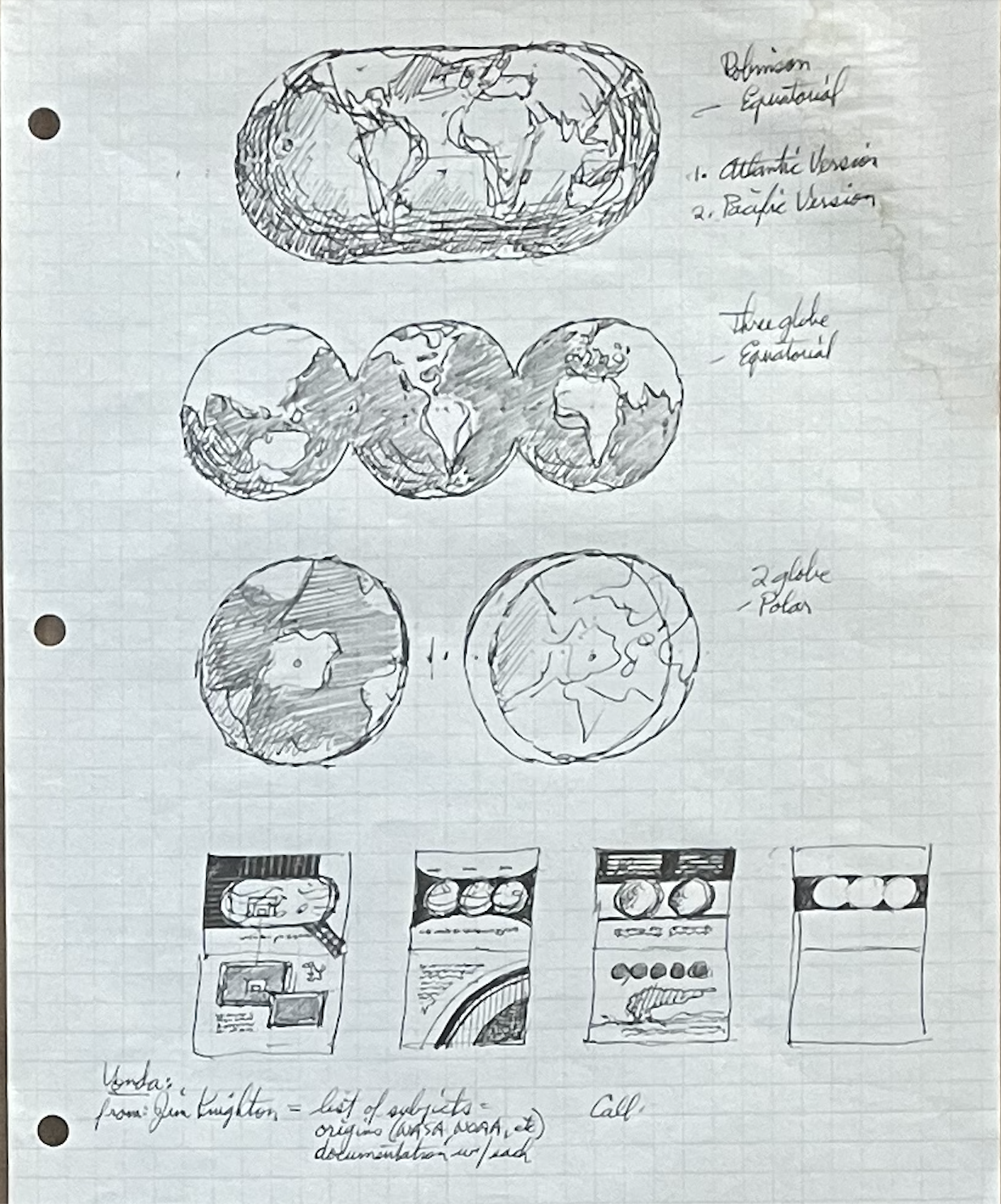 Tom Van Sant, Concept sketches for the Global Visual Library, c.1990, pencil and ink on paper, 11 in. x 8.5 in, TVS digital record